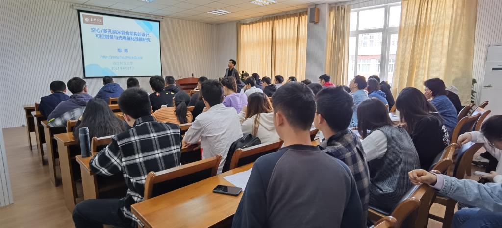 4月21日上午,在梁林校区1号楼506学术报告厅,浙江师范大学胡勇教授来九色视频 作题为《空心/多孔纳米复合结构的设计、可控制备与光电催化性能研究》的学术报告。