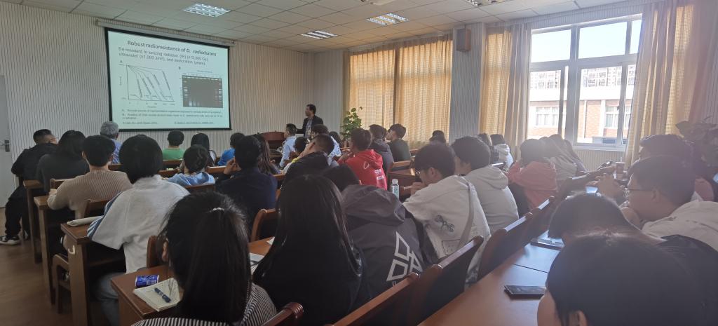 该报告是“生物工程,精彩纷呈”系列学术报告会,报告主要内容是耐辐射奇球菌的极端辐射抗性与高效DNA损伤修复机制,讲座之后,华跃进博士详细地回答了师生提出的问题,进行了深入的交流与探讨。