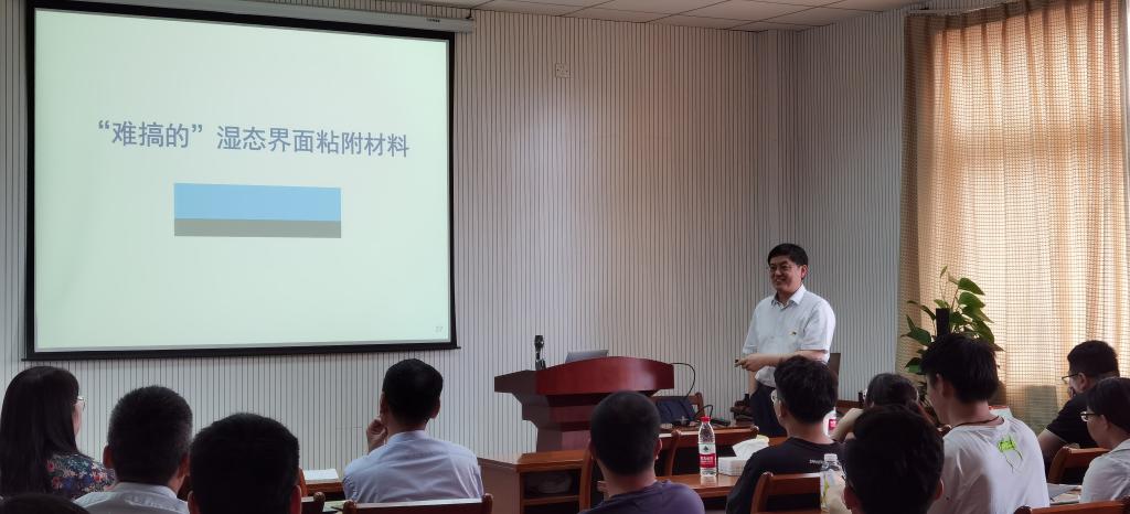 作题为“仿生粘附界面材料”的学术报告,学院院长曹雪波主持讲座,全院师生40余人到场聆听。