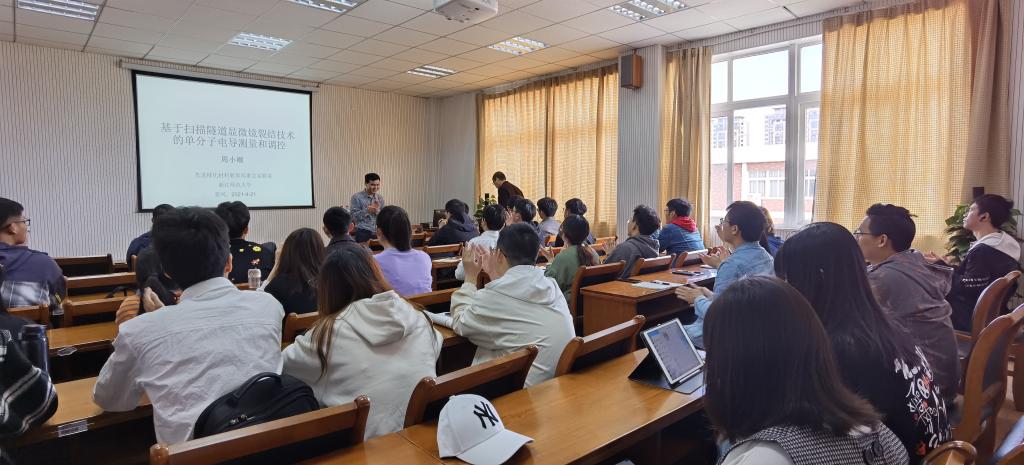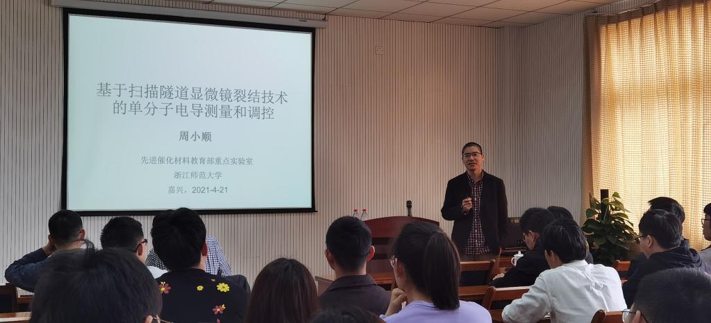 4月21日上午,在梁林校区1号楼506学术报告厅,浙江师范大学周小顺研究员来九色视频 作题为《基于扫描隧道显微镜裂结技术的单分子电导测量和调控》的学术报告。
