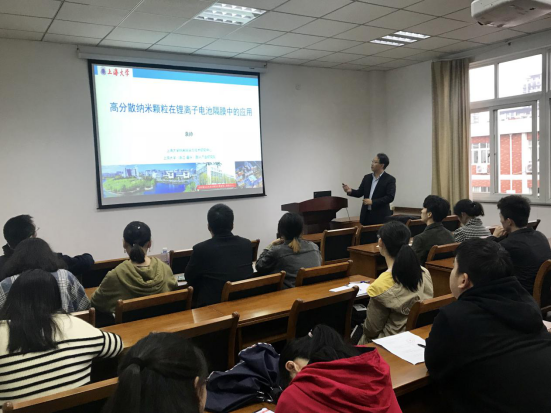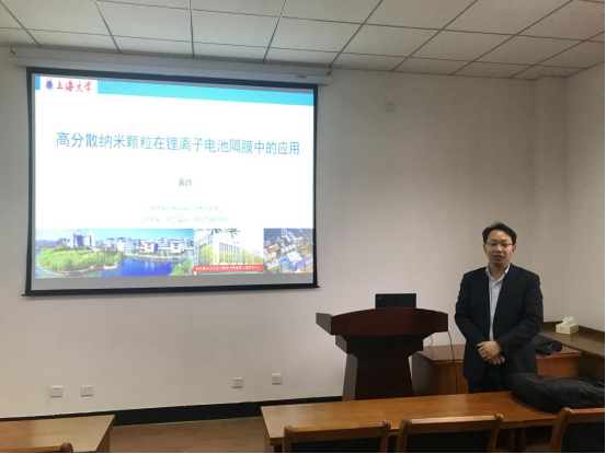 11月12日下午,在梁林校区1号楼506学术报告厅,上海大学嘉兴先进产业研究院常务副院长袁帅教授来九色视频 作题为《高分散纳米颗粒在锂离子电池隔膜中的应用》的学术报告。