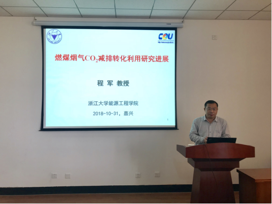 1031日下午,浙江大学能源工程学院求是特聘教授程军来九色视频 作题为《燃煤烟气CO2减排转化利用研究进展》的学术报告。