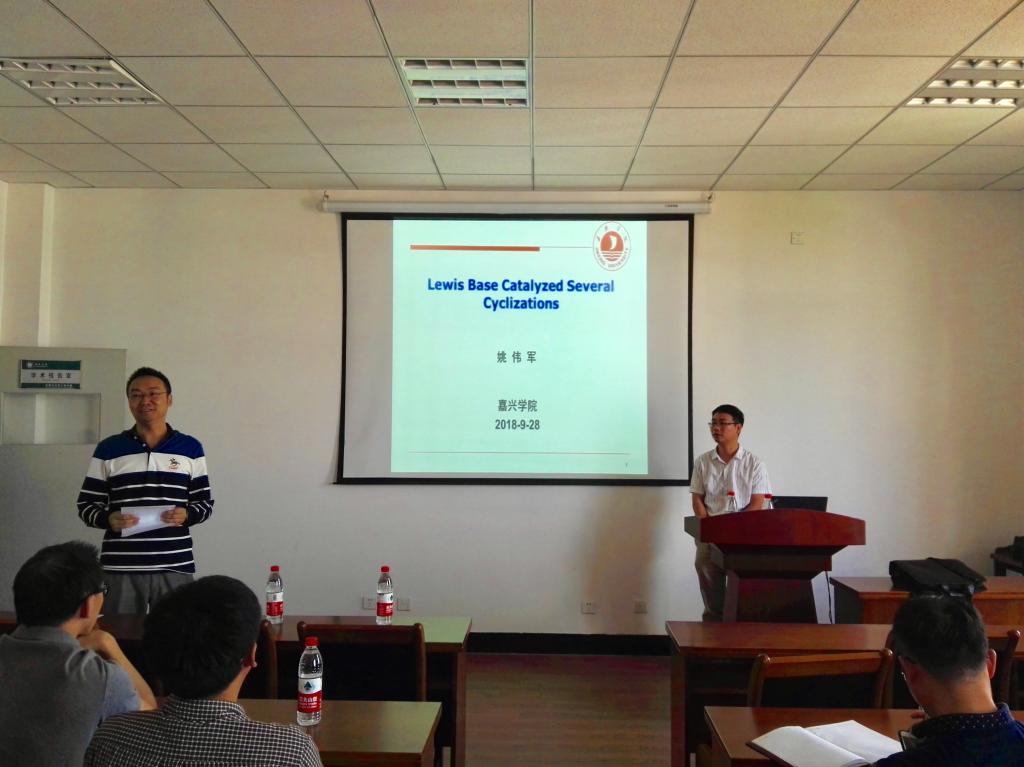 2018年9月28日下午,在梁林校区1号楼506学术报告厅,浙江理工大学特聘教授、钱江学者、姚伟军博士来九色视频 作题为《路易斯碱催化环加成反应研究》的学术报告。