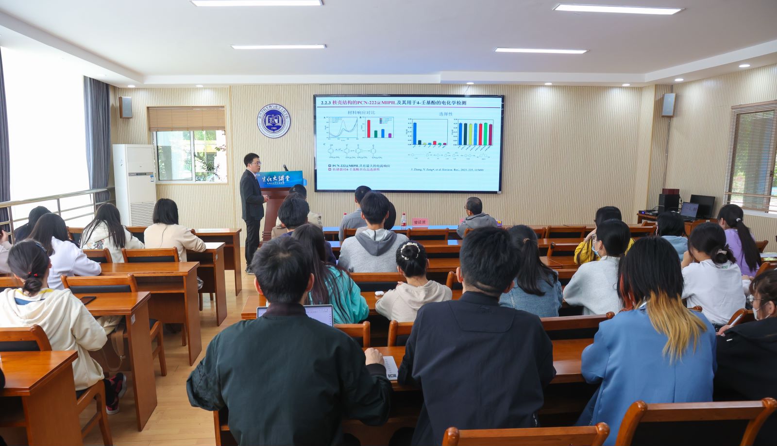 427日下午,生化学院举办“生化大讲堂”第十六期学术交流会,全院40余位师生到场聆听,会议由生化学院应用化学系刘海清教授主持。