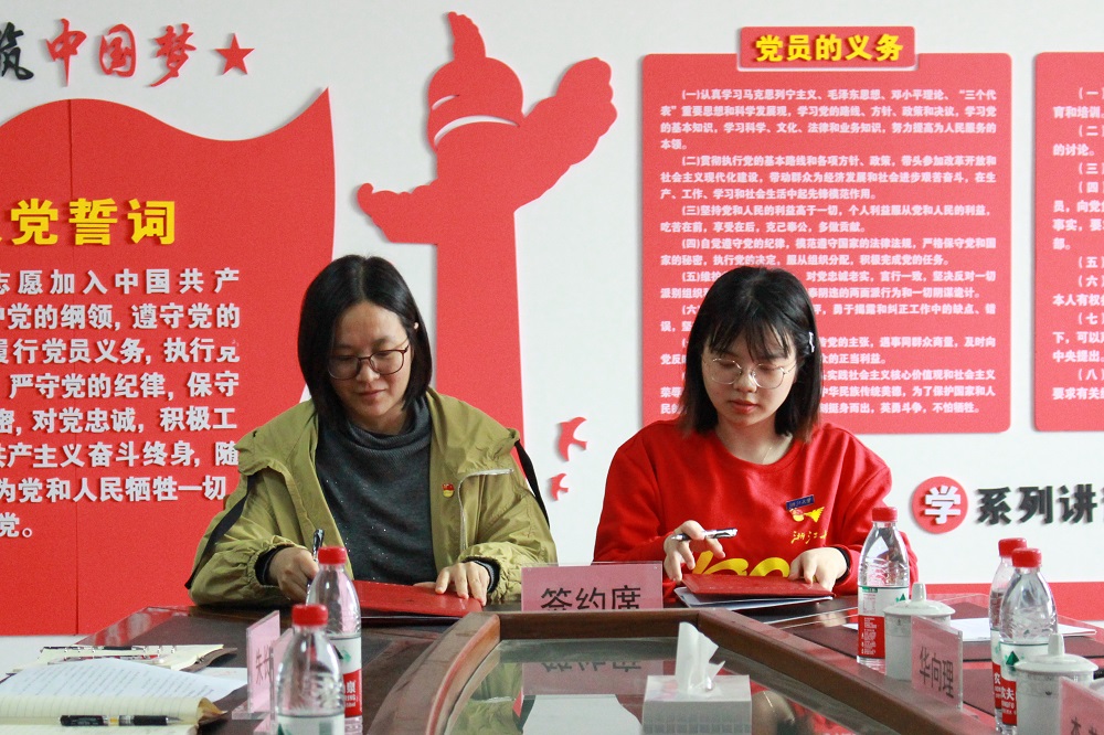 环生系学生党支部书记共同签订了党支部结对共建协议书,双方党委书记共同为共建单位进行揭牌。