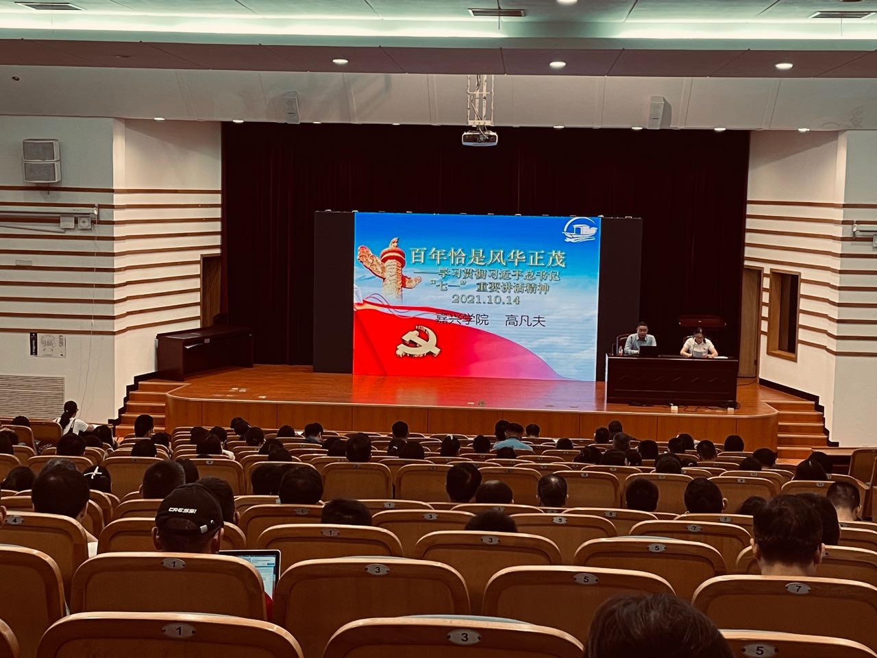 为贯彻落实习近平总书记“七一”重要讲话精神,持续深入推进党史学习教育工作,10月14日下午,九色视频 在学校TCL报告厅举行学习贯彻习近平总书记“七一”重要讲话精神专题宣讲会。学校党史学习教育专家宣讲团成员、马克思主义学院高凡夫博士作宣讲,学院全体教职工参加宣讲会。会议由学院党委书记杨丽娜主持。