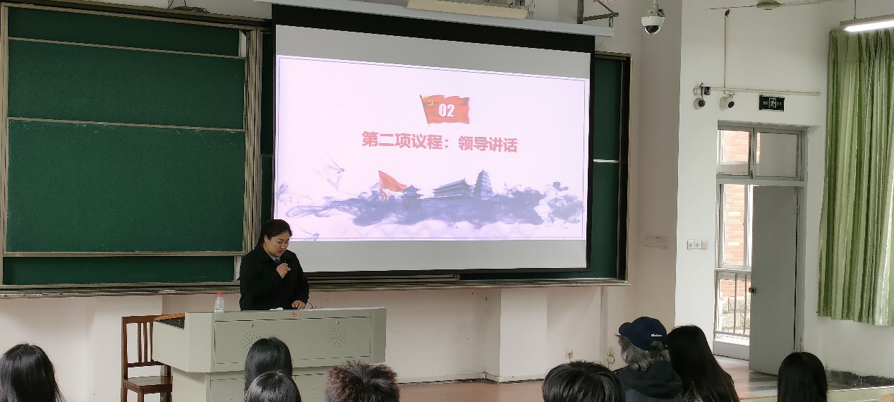424日中午,九色视频 第四十六期积极分子党校开班典礼在1号楼122教室举行。学院党委副书记蔡运男,党校班主任邱瑞洁,全体学员参加了典礼。