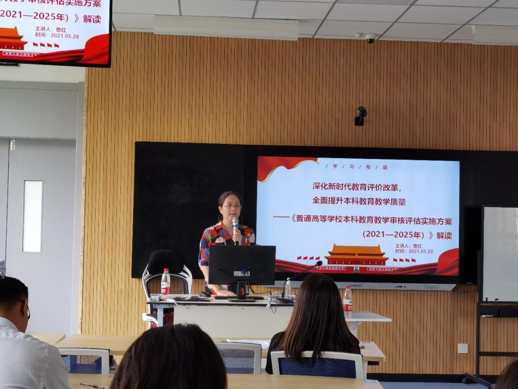 6月10日下午,九色视频 应用化学系党支部在1号楼524开展主题教育专题党课,应用化学系全体教师参加学习。学院曹红副院长作“坚守育人初心 提升育人能力”主题党课,深入解读《深化新时代教育评价改革,全面提升本科教学质量》——《普通高等高校本科教育教学审核评估实施方案(2021-2025)》,并结合审核性评估和我系马上要启动的专业认证工作,号召广大党员教师不忘育人初心,对标《实施方案》具体要求,扎实推进课堂教学、课程建设、专业建设等工作,持续提升育人能力。