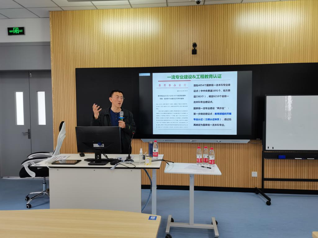 艾宁为全体参会人员做了辅导报告他首先讲解了“工程教育专业认证”涵义、必要性紧迫性,同时又重点讲述了在申报书撰写中的注意点,并且就学院如何推进该工作提供了行之有效的建议他指出学院一定要统一领导、全员参与,把该项工作跟2021版培养方案的制定和教学大纲的修订相结合。最后,学院院长曹雪波发表了动员讲话,他指出“工程教育专业认证”工作时间紧、任务重,学院即将成立工作专班,并提供专门的办公场所全面保障工作的开展。