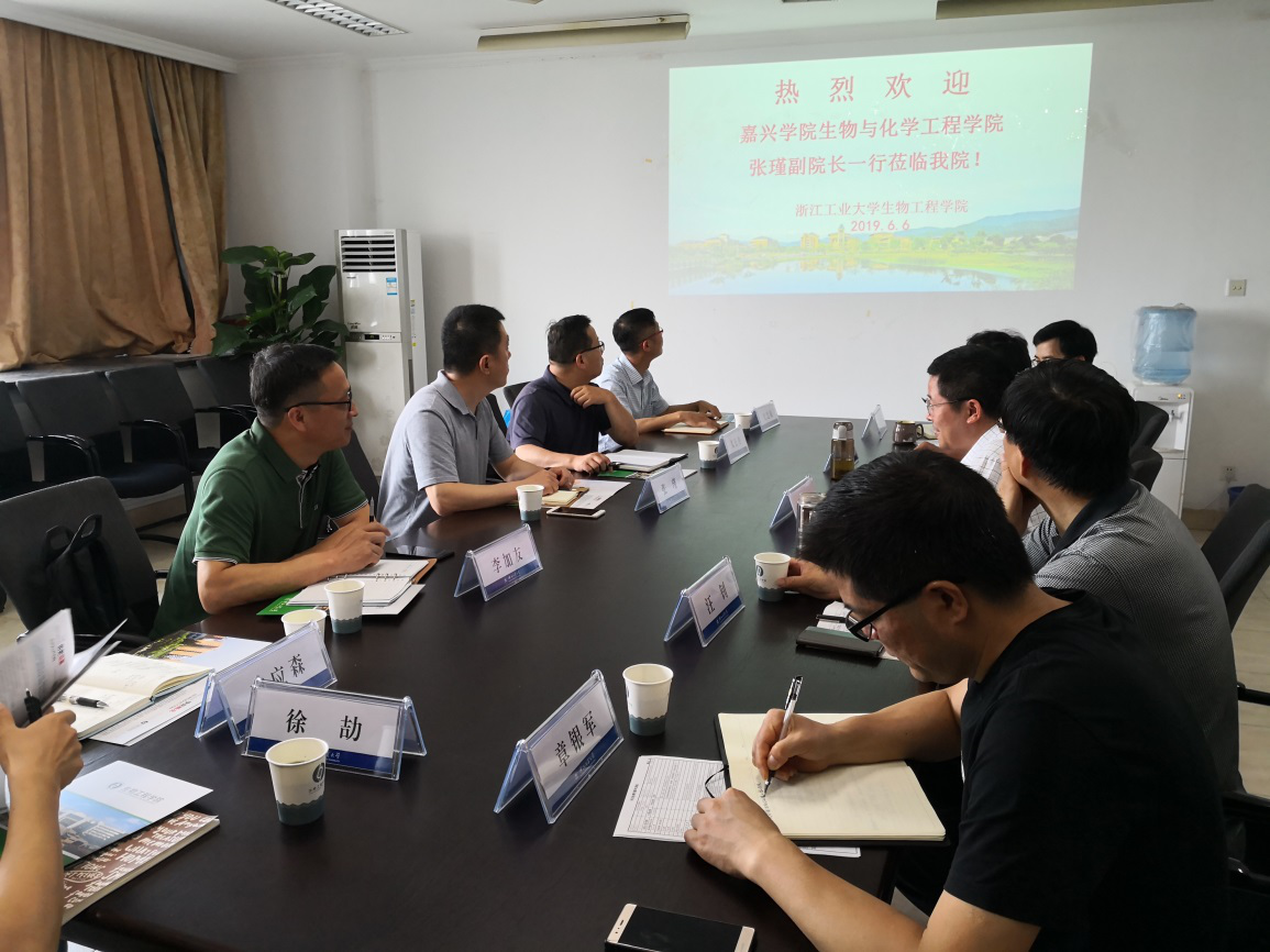 2019年6月6日,生化学院副院长张瑾同环境与生物工程系副主任朱长俊带领生物工程和环境工程专业建设小组的部分教师前往浙江工业大学生物工程学院调研学习,就有关专业认证和学科建设事宜进行交流。浙江工业大学生物工程学院副院长吴石金学系主任汪钊等领导出席交流会