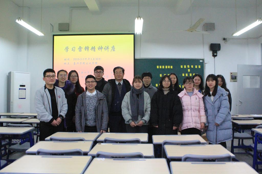 2019年3月5日,在学雷锋日当天,生化学院团委与嘉兴新四军历史研究会联合举办了雷锋精神系列讲座,讲座邀请新四军历史研究会唐瑞娥老师、文邦卫老师以及吴建凤老师与,分为两场同时进行