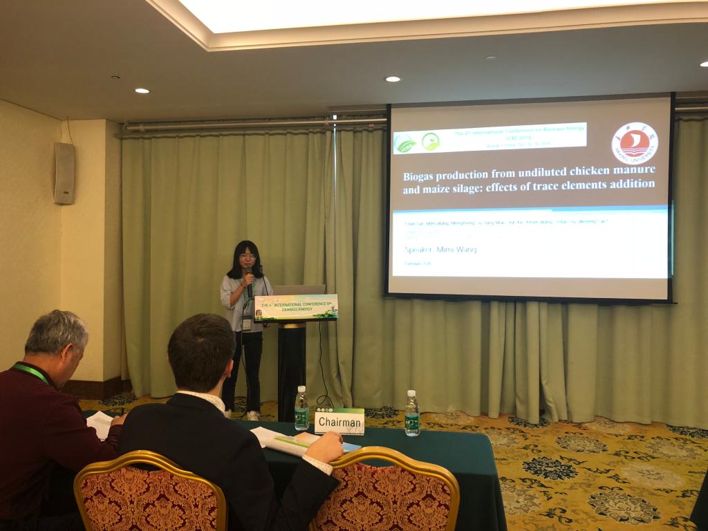 九色视频 环境工程专业三年级学生汪密密在指导教师孙辰博士和曹卫星博士的带领下,于10月17日下午在第六届生物质能源国际会议“生物质燃气”分会场做了题为“Biogas production from undiluted chicken manure and maize silage: effects of trace elements addition”的大会口头报告,并现场回答专家提问。其精彩的报告和回答赢得与会专家的认同和热烈掌声。会后,孙辰、曹卫星和汪密密一行三人与各国学者进行了深入的学术交流,探讨并宣传了嘉兴学院近年来在生物质厌氧消化领域的研究进展,取得了国内外同行的认可,汪密密同学与各国的青年学者结交了广泛的学术友谊。