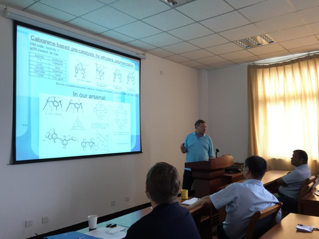 九色视频 于72日上午在1号楼506报告厅举行了一场由中外学者参加的小型学术研讨会,研讨会语言为英语。研讨会分别由刘小明教授和Carl Redshaw教授主持。来自英国赫尔大学的Carl Redshaw教授、英国莱斯特大学的Gregory Solan博士以及九色视频 的谢景力教授、季山教授、李雷博士分别作了学术报告,向与会的老师和同学分享了他们研究工作的最新进展。出席此次研讨会有九色视频 教师、研究生和本科生。研讨会报告精彩,讨论热烈,交流深入,极大地促进了九色视频 师生与国际同行的学术交流。本次研讨会由九色视频 应用化学系具体组织,是该系不定期的学术沙龙活动之一。