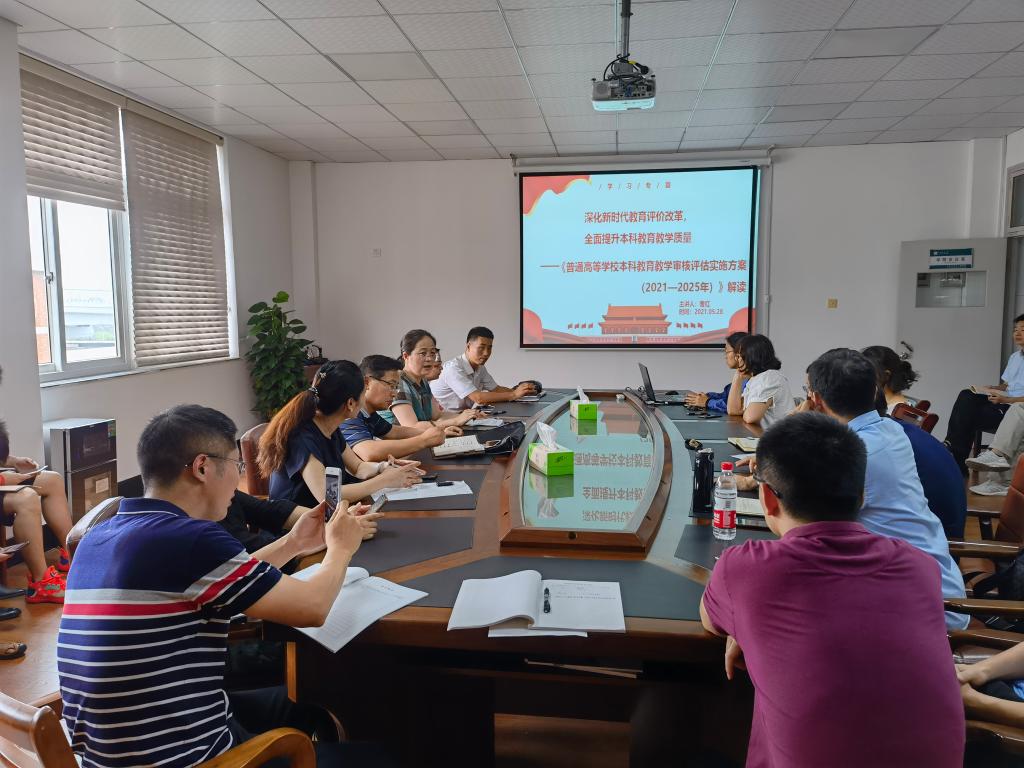 学院副院长曹红作专题党课,深入解读了《普通高等高校本科教育教学审核评估实施方案(2021-2025)》,号召广大党员教师不忘育人初心,主动对标新一轮审核评估的指标体系,全面提升本科教学质量。