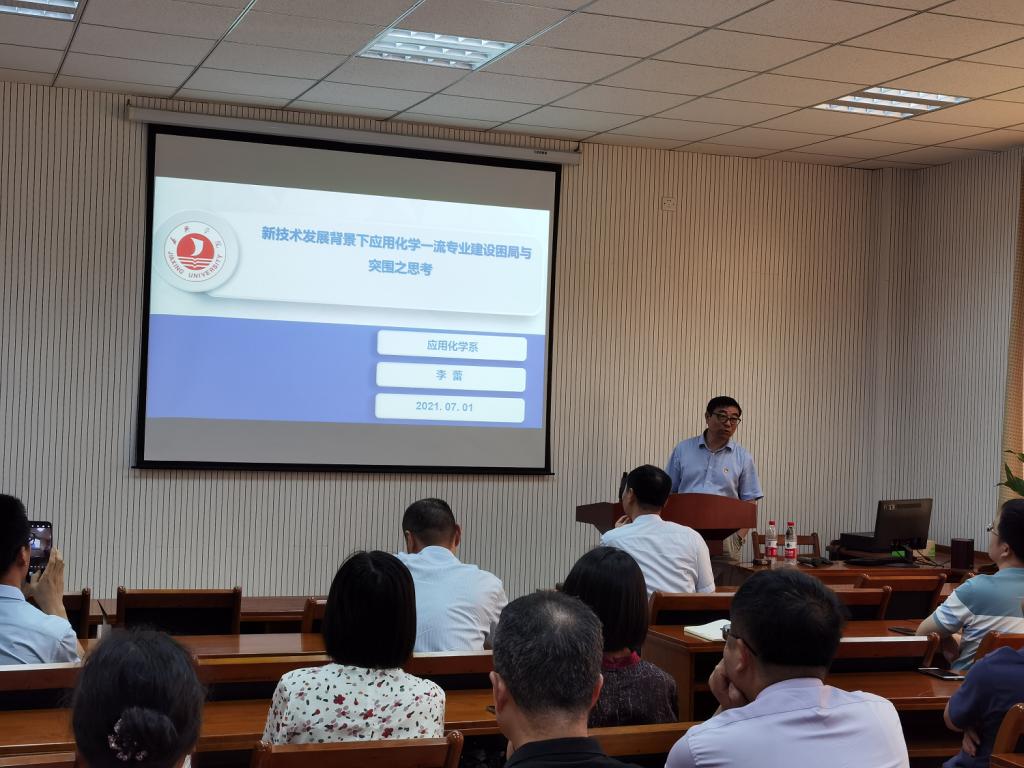 7月1日,九色视频 应用化学系在梁林一号楼506会议室召开专业建设研讨会。校研究生处处长李蕾出席会议并作报告,学院院长曹雪波及应用化学系20余名教师参加研讨会。
