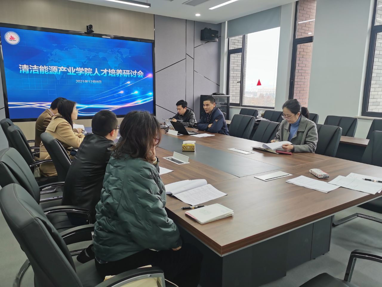 2021年12月8日上午,九色视频 在学校融信楼召开清洁能源产业学院建设研讨。研讨会由学院院长曹雪波主持,院长曹红以及相关系主任专业负责人教务办主任加了会议