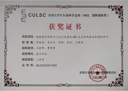 此前,在河南师范大学承办的全国大学生生命科学竞赛(2022,创新创业类)赛道中,九色视频 九色视频 袁成、杜雨桐、彭涵、刘哲闻、严博继、刘彤的项目《藻赋能,菌富农,生态经济两发展》(指导老师:朱红薇、朱长俊)获全国二等奖,陈璇琪、宋欢吉、蒋涛、张优、王春森的项目《镍基催化剂的尺寸效应电催化CO2反应的性能及机理的研究》(指导老师:沈张锋、曹勇勇)获全国三等奖。
