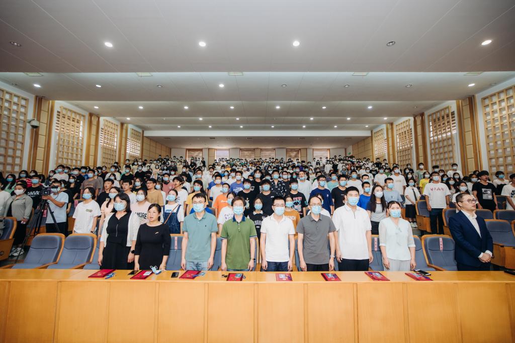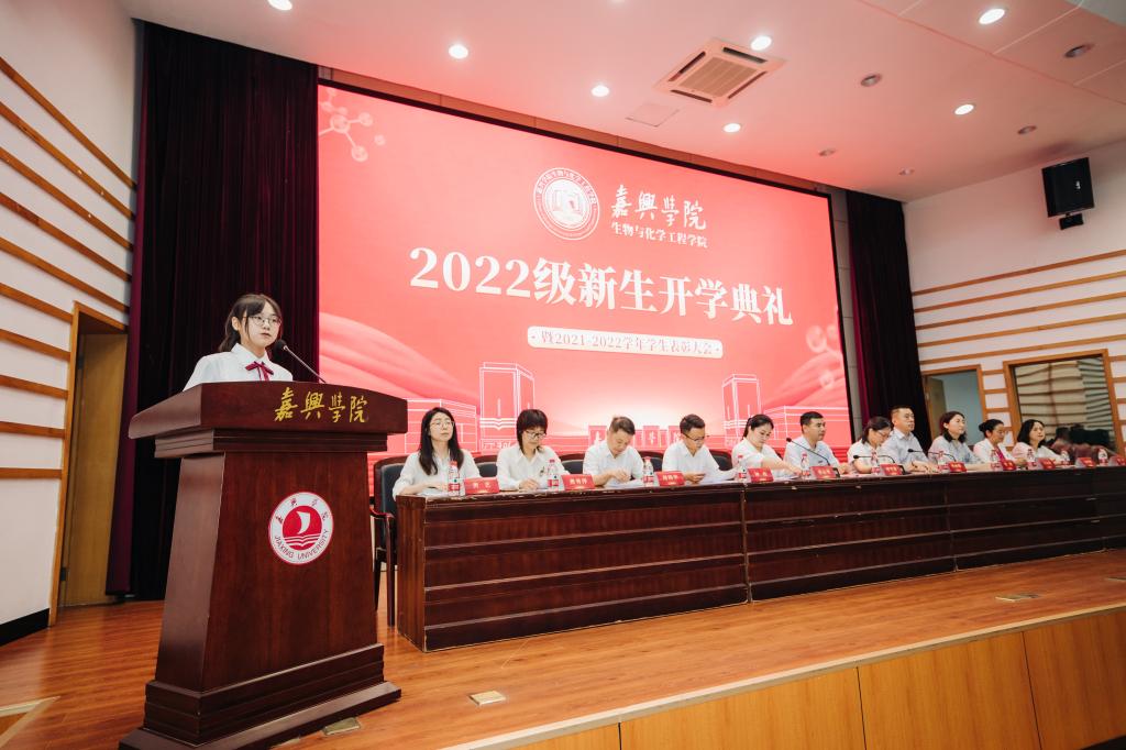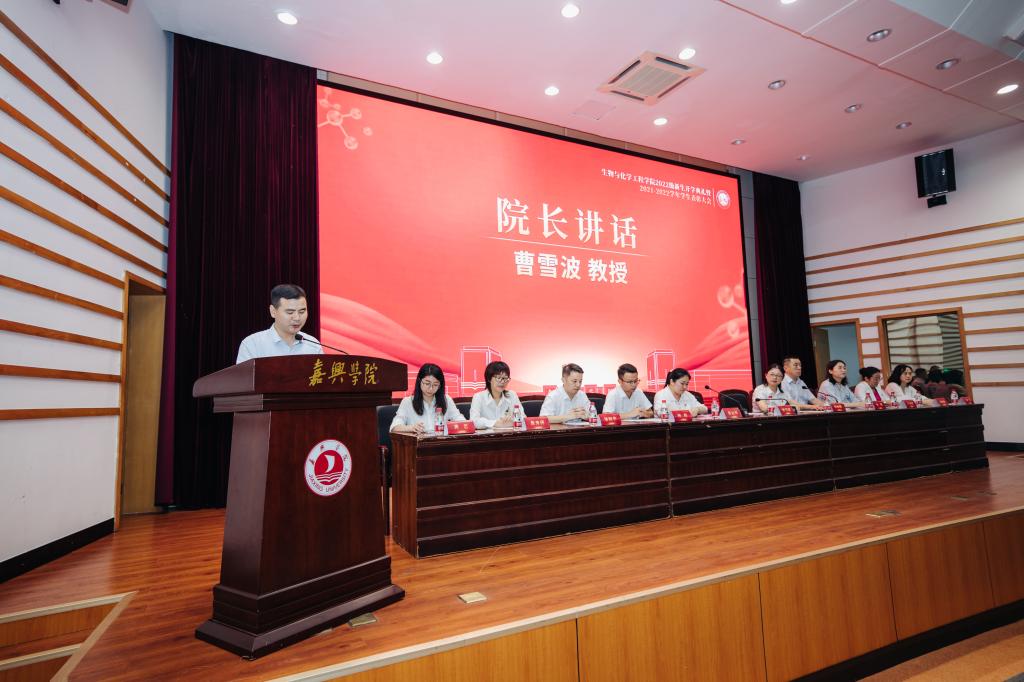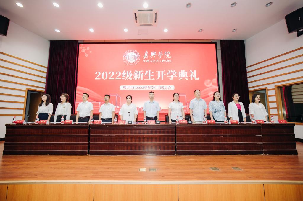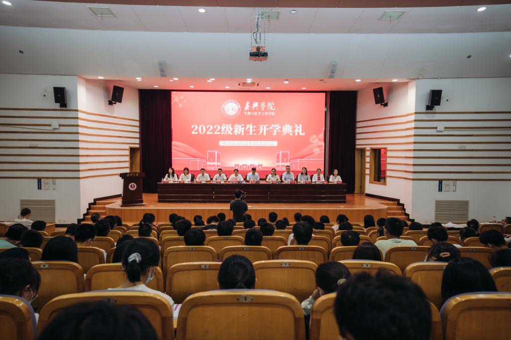 2022级新生开学典礼在梁林校区一期TCL报告厅隆重举行。学院党政领导班子成员、系(部)主任、新生班主任、辅导员、校友代表、助理班主任及2022级新生等共300余人参加了开学典礼。因疫情原因未能线下报到的新生与家长一同线上观看。典礼由生化学院党委副书记蔡运男主持。