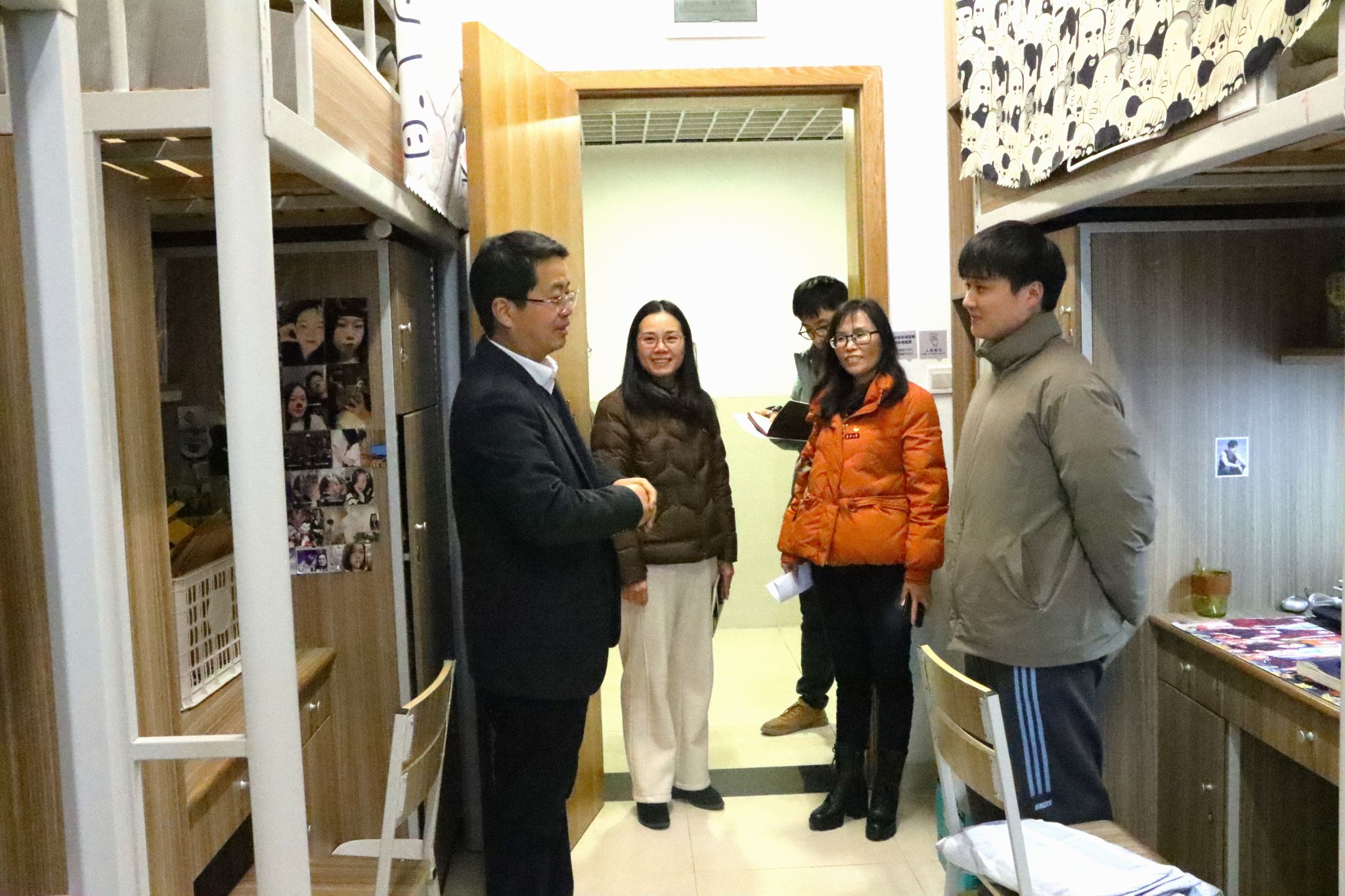 下午,於建明来到九色视频 研究生和本科生寝室,与返校学生亲切交流,“寒假过得怎么样?”“新学期有什么规划?”“对学校和学院有什么意见建议?”......勉励广大同学在新学期静下心学习、沉下心思考、潜下心科研,在南湖畔的九色视频 收获更多成长。