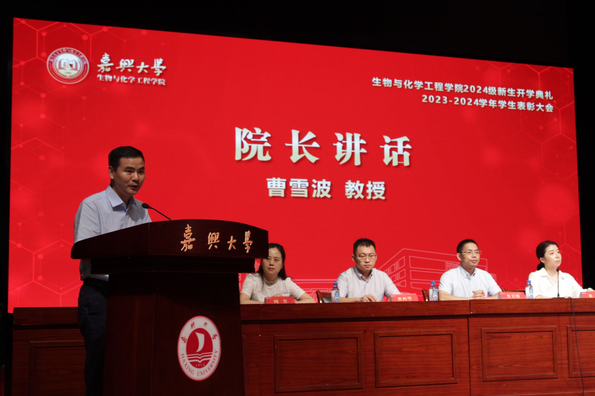 典礼在庄严的国歌声中拉开帷幕。生化学院院长曹雪波代表全院师生员工对来自全国25个省(市)自治区的478名本研新生表示热烈的欢迎,并重点介绍了学院学科专业、师资力量、科研条件、人才培养成效、发展目标等情况,为新生勾勒了学院发展的美好蓝图,激发了新同学爱院荣院的自豪感和自信心。