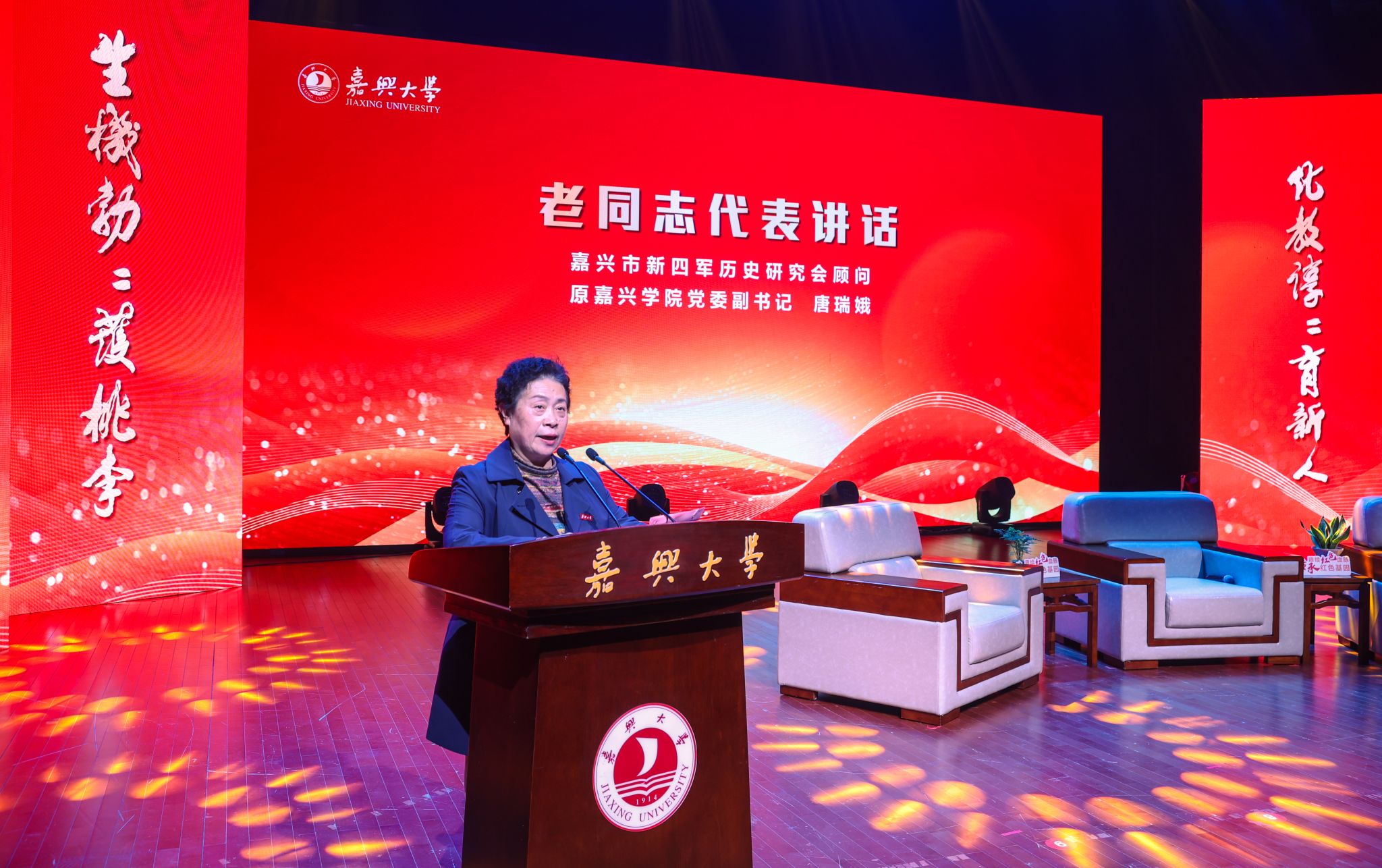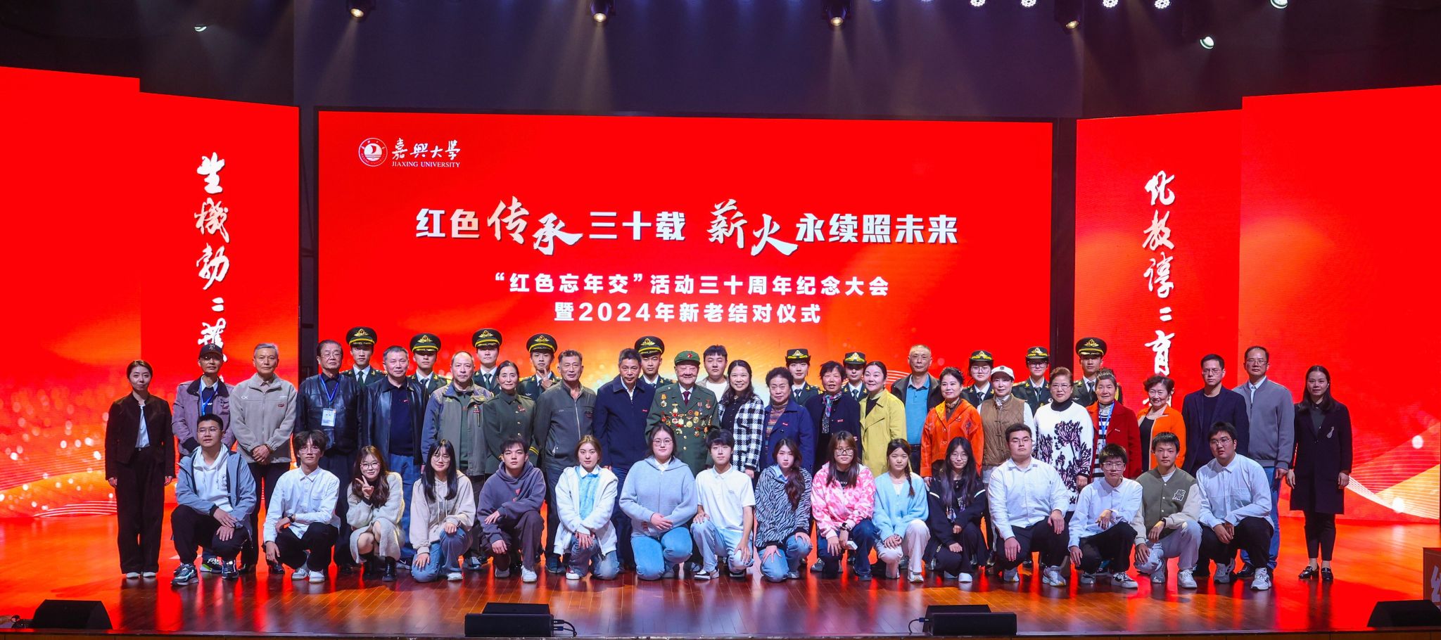 “红色忘年交”活动三十周年纪念大会暨2024年新老结对仪式在学校初心剧场举行。校党委副书记陈立力出席大会并致辞。嘉兴市新四军历史研究会顾问、原嘉兴学院党委副书记唐瑞娥,嘉兴市新四军历史研究会会长周军,副会长张红宇、阮茂荣,“红色忘年交”活动发起人王继述的女儿王佳,活动早期组织者吴建一老师和活动早期参与师生代表等受邀出席大会。