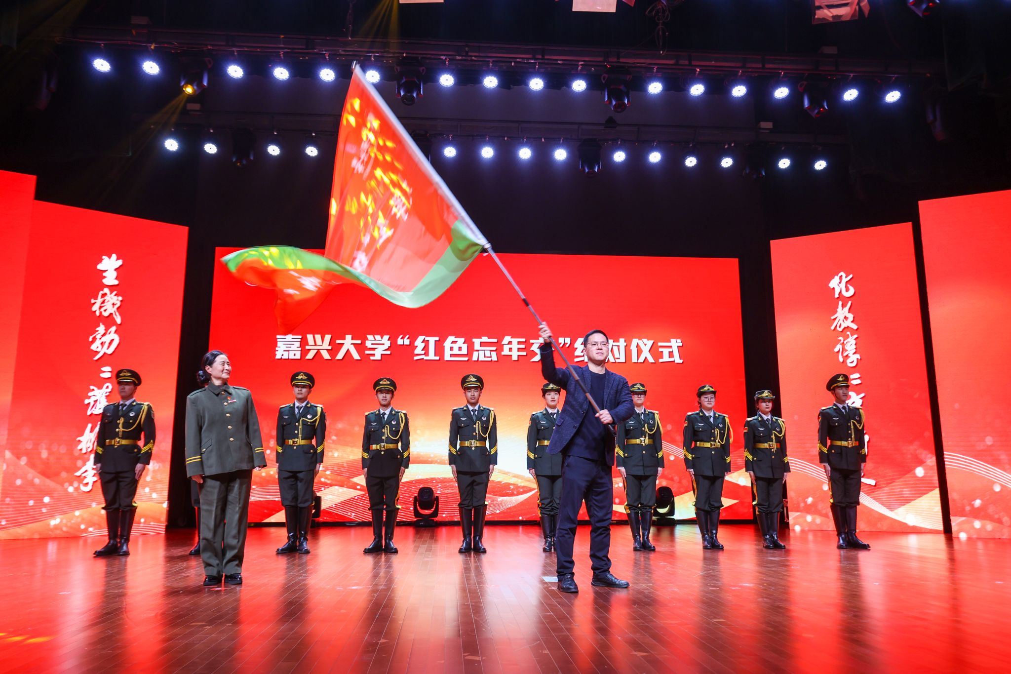 大学生“红军连”授旗。