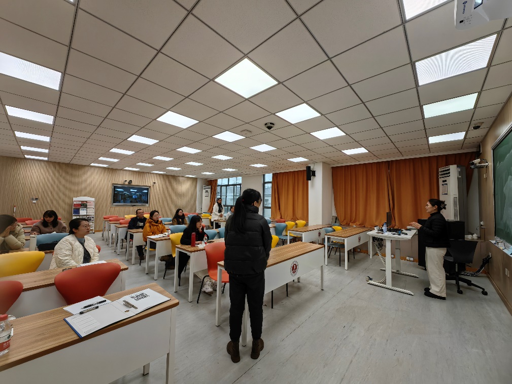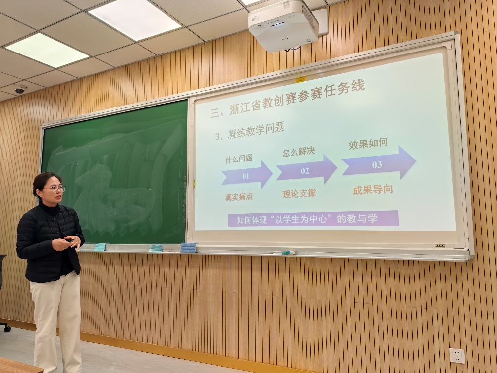 郭海洋老师从赛事简介、申报材料准备、文件解读及课程选择等维度切入,系统分享了教学创新与课程建设的心得。她结合自身实践,强调了先进教育理念在激发学生学习主动性与热情中的关键作用。