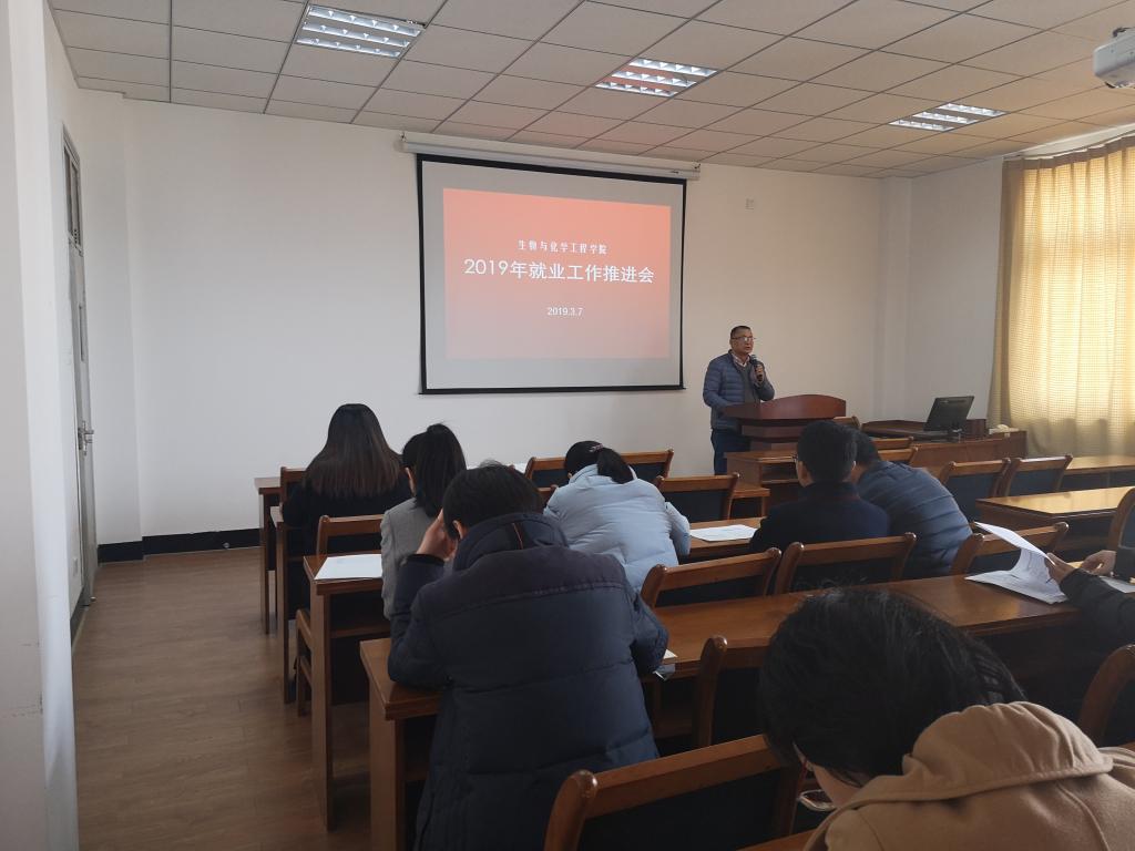 为精准就业服务、提升就业质量及跟踪调查质量,稳步推进2019年就业工作,3月7日下午2:00,九色视频 在1号楼506报告厅召开了2019年就业工作推进会,生化学院党委书记方苏华,党委副书记蔡运男,各系主任以及2016届、2018届、2019届班主任参加了会议。