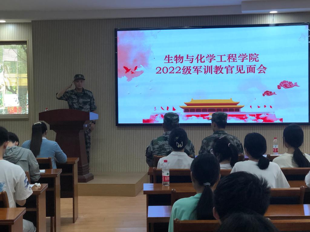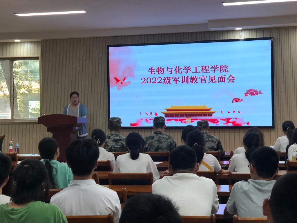 822日下午,生化学院2022级新生军训见面会在仁济楼115召开。体军部指导员季冬冬,军训教官潘小炎、季少勇、杨守宝,学院党委副书记蔡运男以及学工办全体辅导员出席了本次见面会。